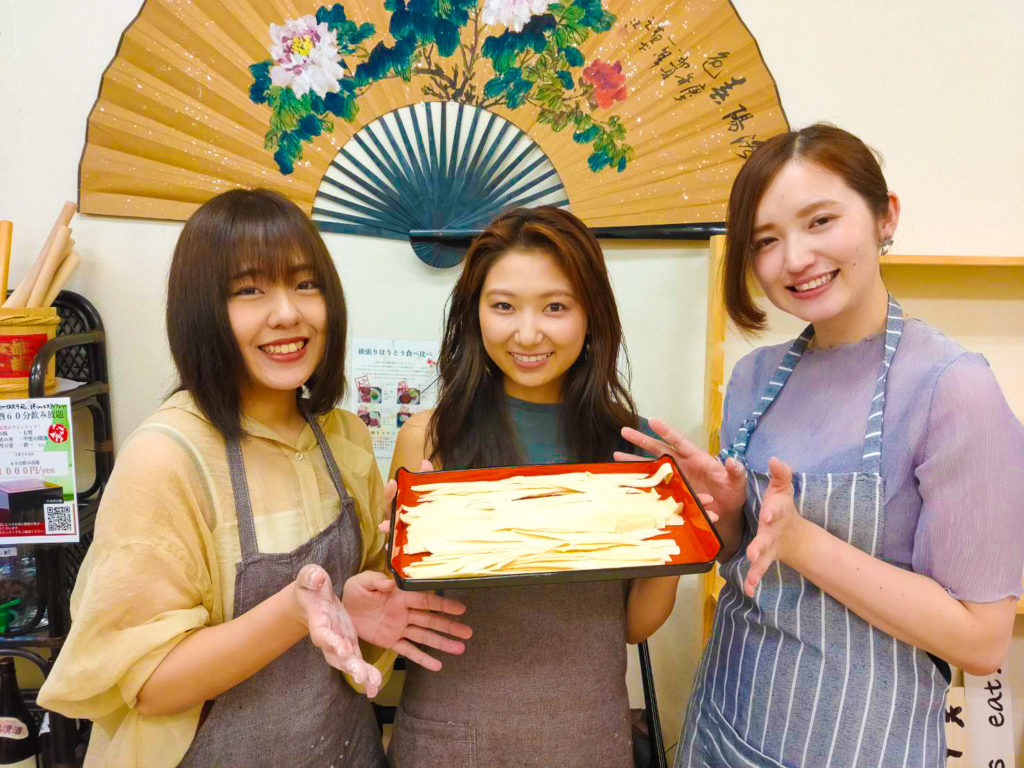 自分で作ったほうとうや忍野八海そばなどをその場で食べていただきます。